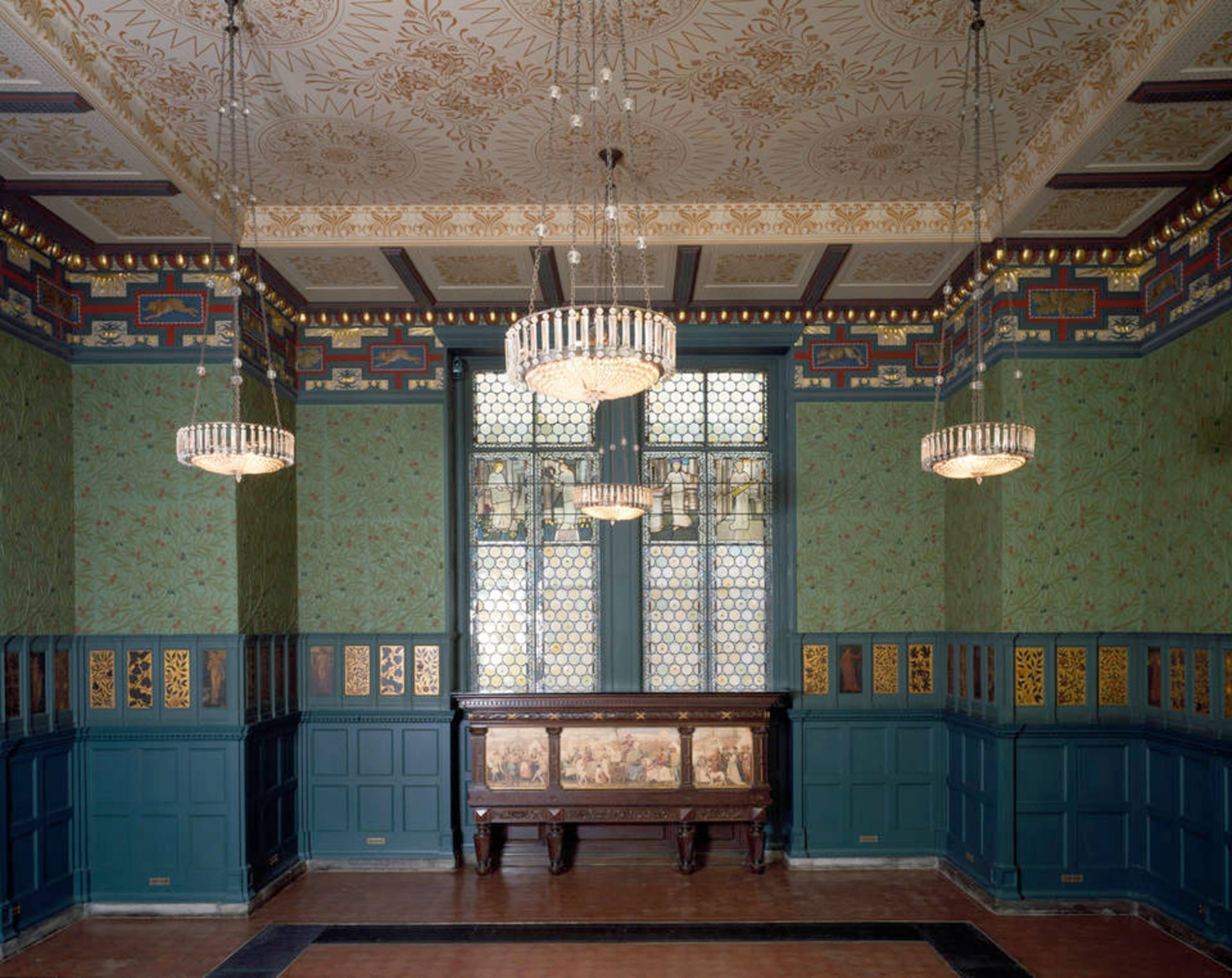 Morris commissioned his friend, the architect Philip Webb, to build a home that reflected the artistic sensibilities that Morris had developed at Oxford. As a first-year student, he had befriended Edward Burne-Jones, who would later become a prominent artist associated with the Pre-Raphaelite movement. Like many Victorians disillusioned by the rapaciousness of the Industrial Revolution, they had grown passionate about the craftsmanship of bygone eras, particularly the chivalric values, rural communities, and detailed aesthetics of the (highly romanticized) Middle Ages.